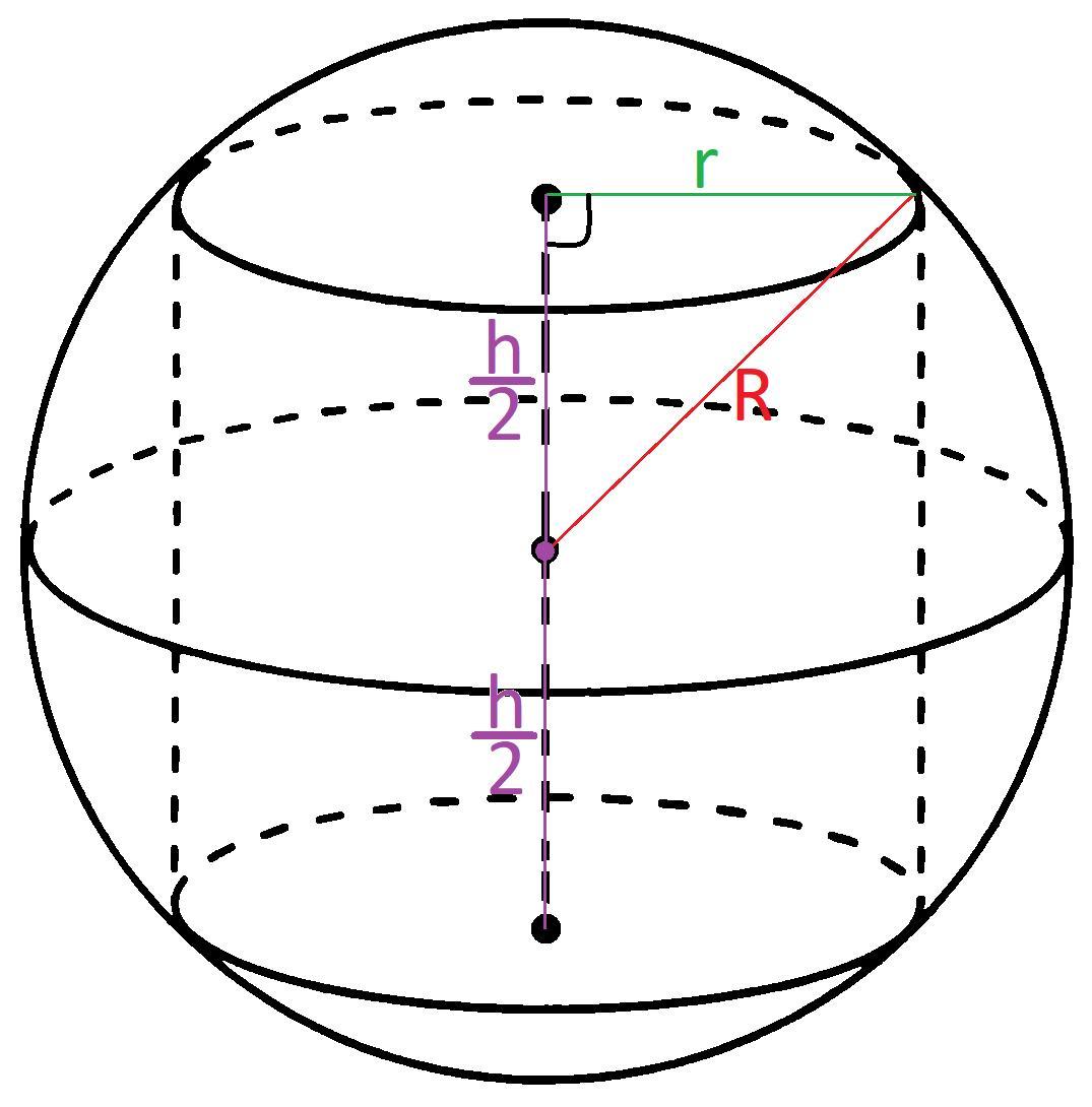 Высота (h) цилиндра с радиусом r, вписанного в сферу с радиусом R равна: