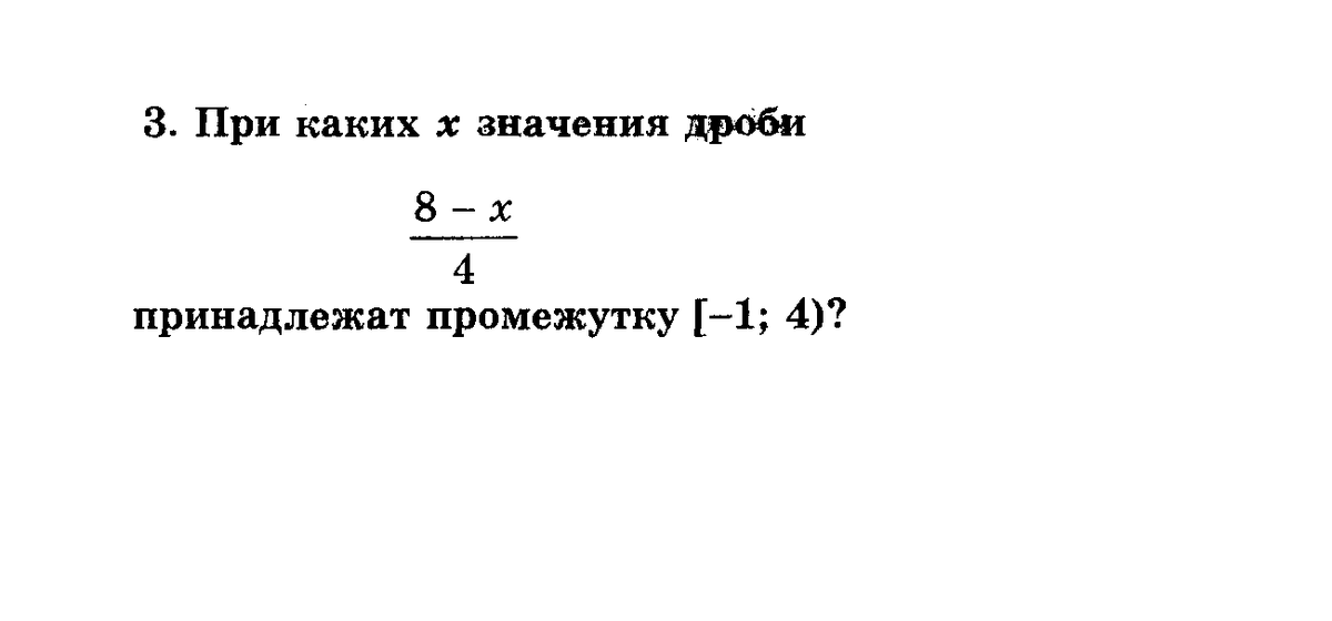 При каких значениях x значение дроби 8-x4 принадлежит промежутку [-1;4)