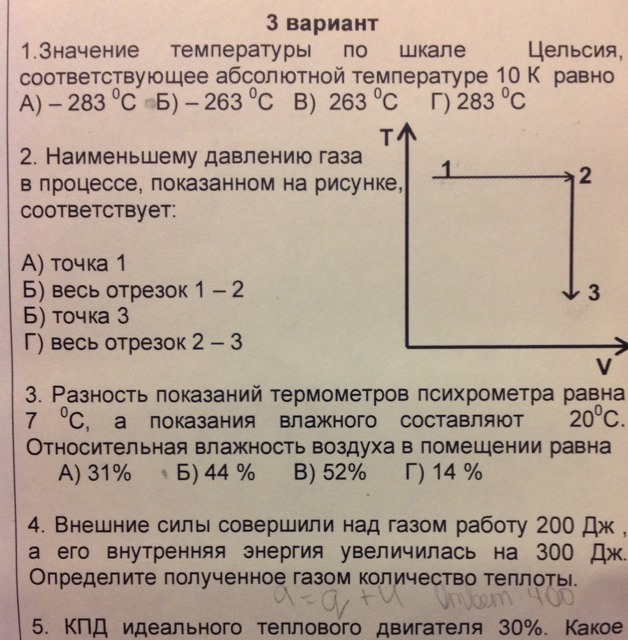 2.наименьшему давлению газа в процессе показанном на рисунке соответствует: