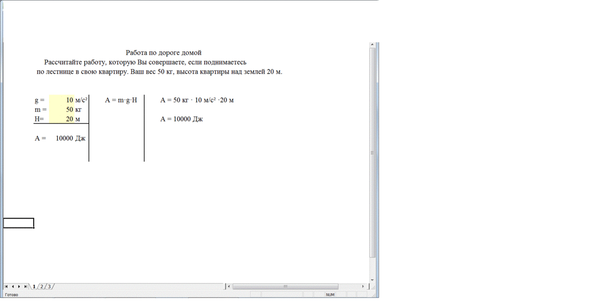 1)представим, если бы я падал с высоты h=15 м(допустим, на такой высоте у меня квартира) сила, действующая на меня F=mg=60(допустим, столько я вешу)*10=600, тогда A=F*S=600*15=9000J