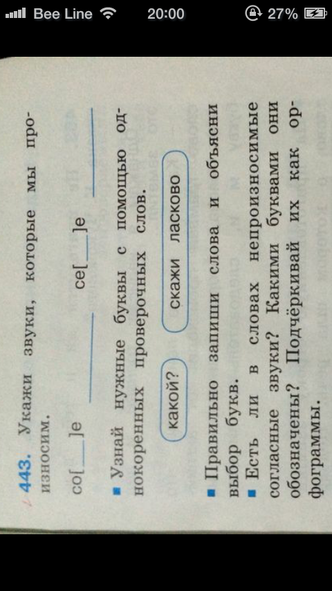 укажи звуки которые мы произносим со[ ]е_______ се[ ]е_________ укажи нужные буквы с помощью однокоренных и проверочных слов какой? скажи ласково правильно запиши слова и объясни их .если в слове непроизносимые согласные звуки?какими буквами они обозначены?