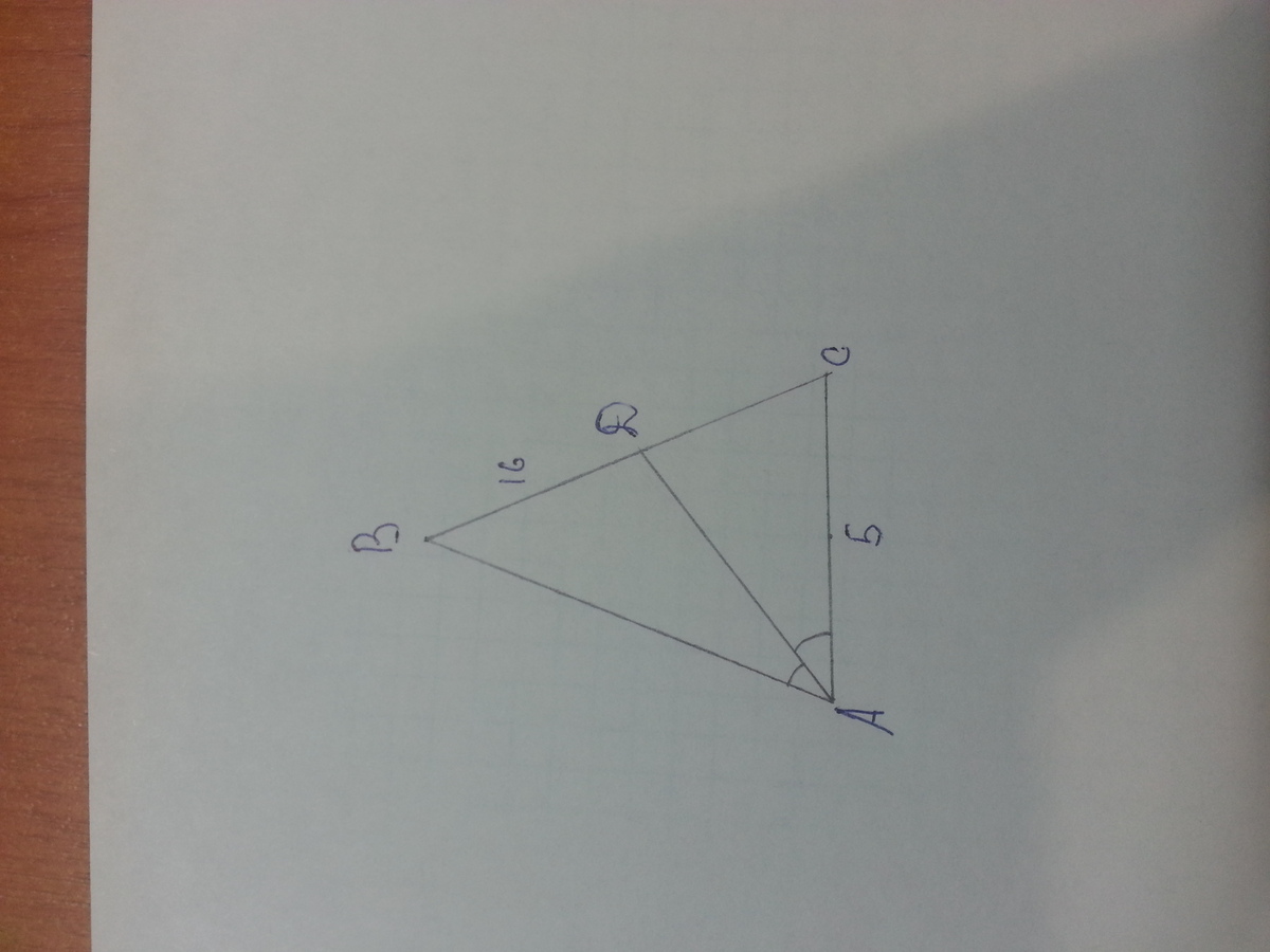 В равнобедренном треугольнике ABC, AB=BC, проведена биссектриса AD угла BAC, точка D лежит на BC, длины отрезков AC=5 и BD=16. Найдите периметр треугольника ABC.