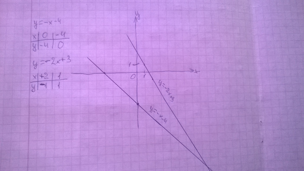 черти табличку для каждого уравнения,подставляй под x и считай y, потом отметь эти точки на графике