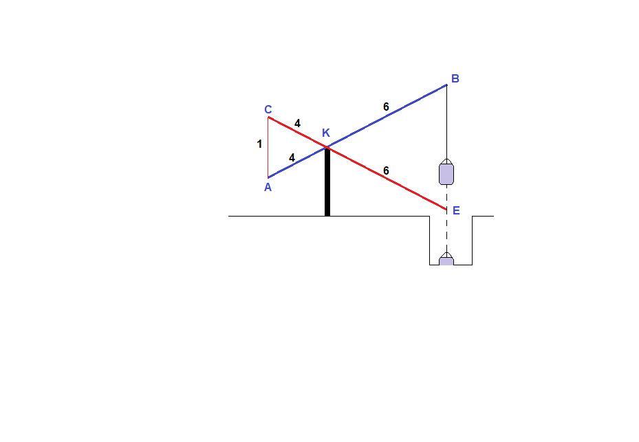 Отрезок АВ - исходное положение "журавля", СЕ - в результате подъема короткого плеча на 1 м.