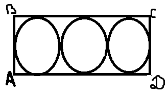 В прямоугольник АВСD вписаны три равные окружности радиуса 4 см так, как показано на рисунке. Чему равна площадь прямоугольника АВСD?