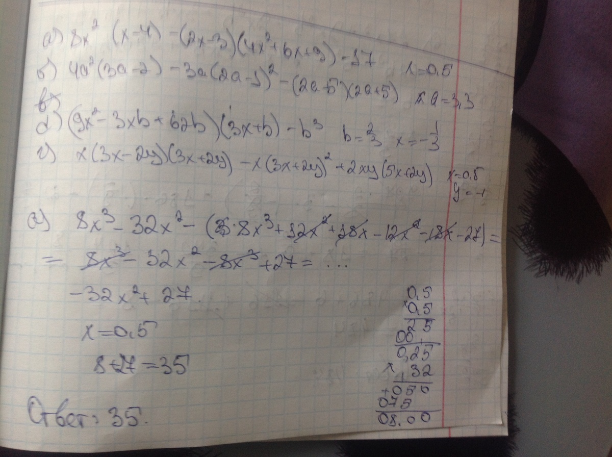 а)8х^2(х-4)-(2х-3)(4х^2+6х+9)-17 при х=0.5