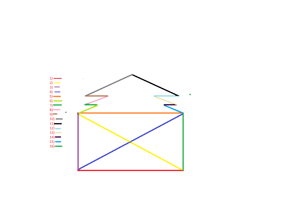 Все в приложениях, цвета - последовательность рисования. Берем карандаш и ведет неотрывную линию , теперь поворачиваемся на 45 градусов влево и продолжаем рисовать, потом рисуем вниз и снова поворачиваем на 45 градусов вправо, потом ведем линию влево и т.д.