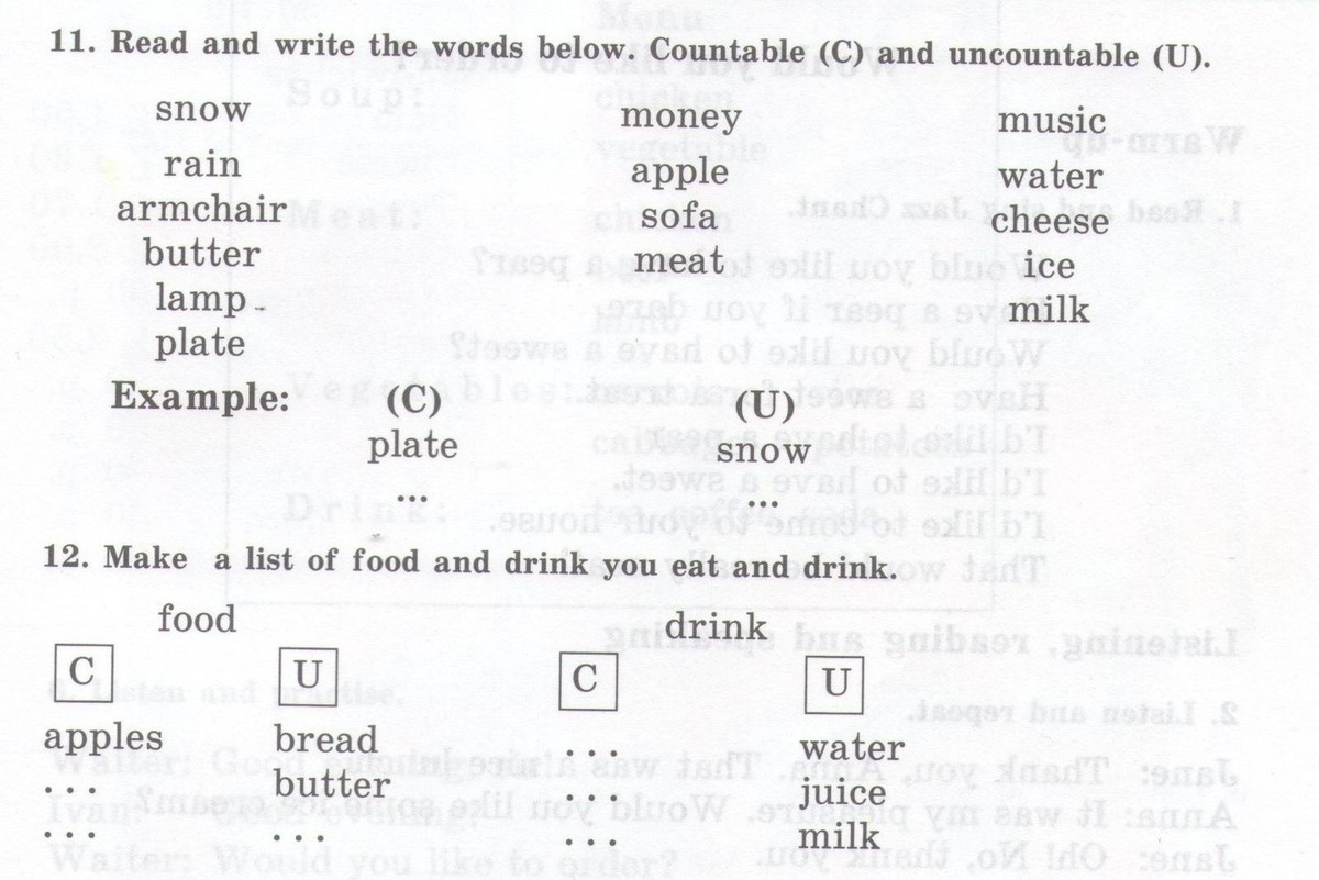 uncountable: rain, butter, money, meat, music, water, cheese, ice, meat