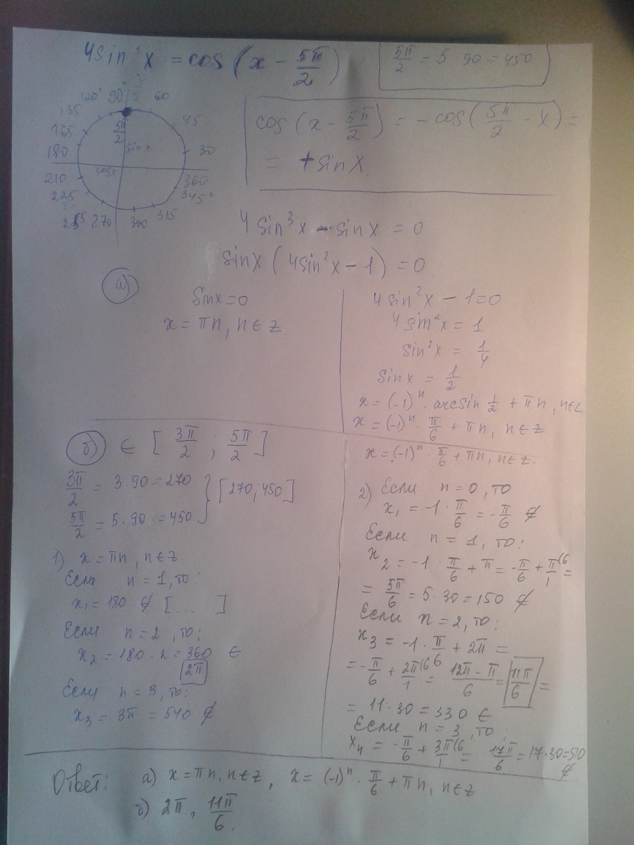 4 sin^3 x = cos ( x − 5π/ 2 ).
