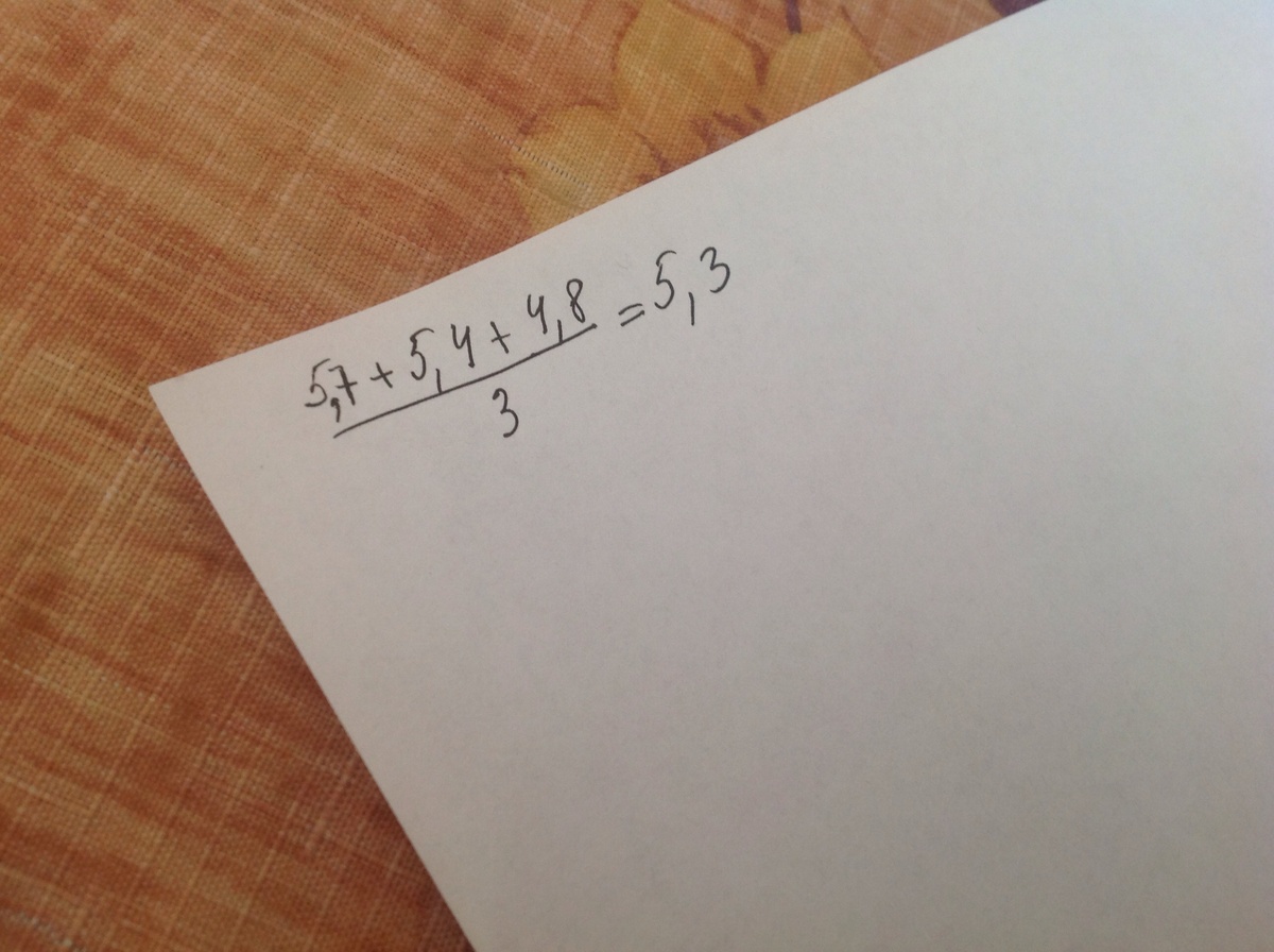 Пешеход за первый час прошел 5,7км, за второй-5,4 км, за третий-4,8 км.Найдите среднюю скорость пешехода за все время движения.