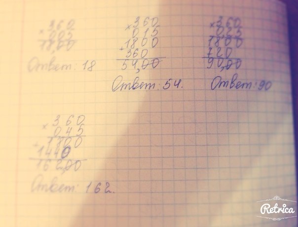 0,05*360; 0,15*360; 0,25*360; 0,45*360.