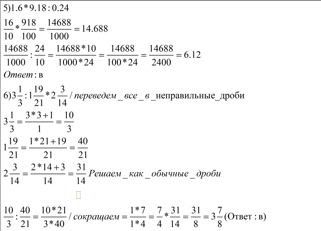При делении дробей знаменатель и числитель второй меняются местами, надеюсь сокращения понятны.