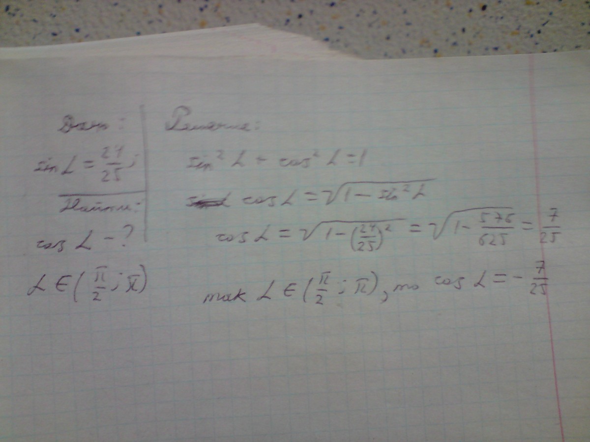 Найдите cosα если sinα=24/25 и α принадлежит (π/2;π)