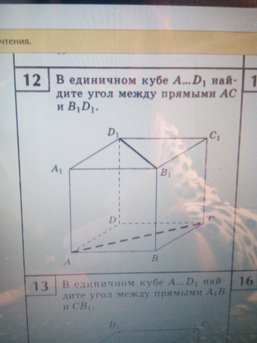 DB и AC лежат в одной плоскости - диагонали основания -квадрата А диагонали квадрата пересекаются под прямым углом Значит угол (АС, D1B1)=90 градусов