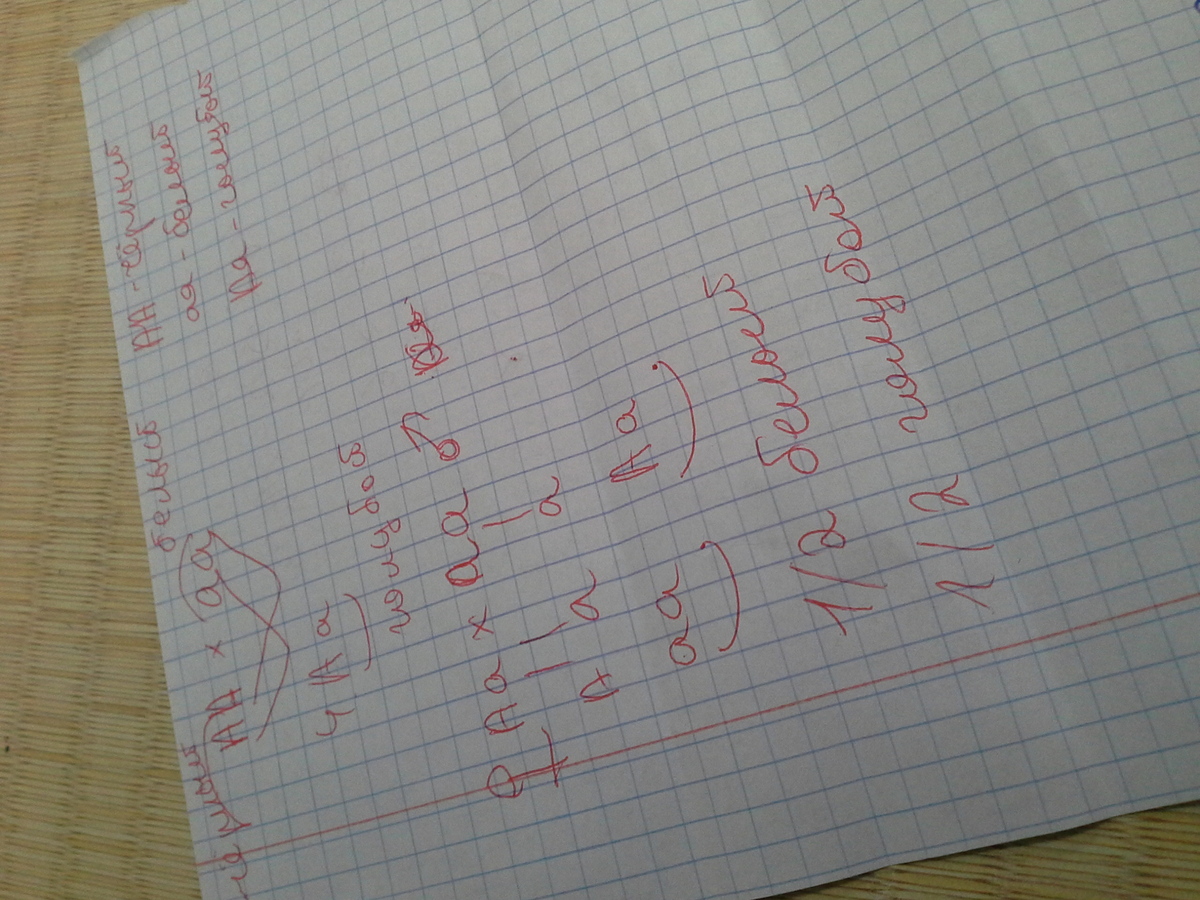 При скрещивании между собой куры с белым оперением всегда дают белое потомство , а куры с чёрным опереньем - чёрное . Потомство от скрещивания белой и чёрной особей оказываются голубыми . Какого цвета оперения будут иметь потомки белого пктуха и голубой курицы. А какого цвета будет оперение двух особей с голубым оперением ?