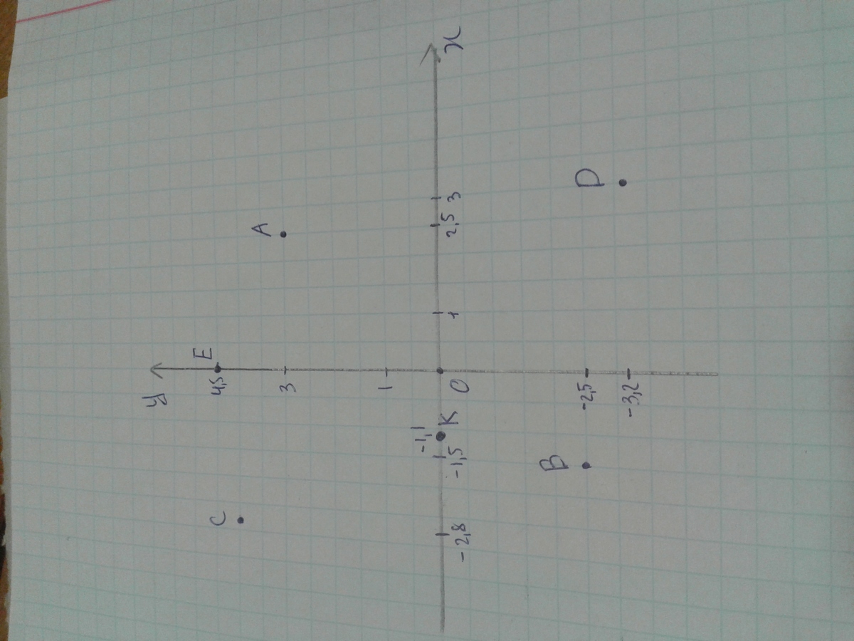 на координатной прямой отметьте точки: A (2,5; 3) , B (-1,5; -2,5 ) , C (-2,8; 4 )