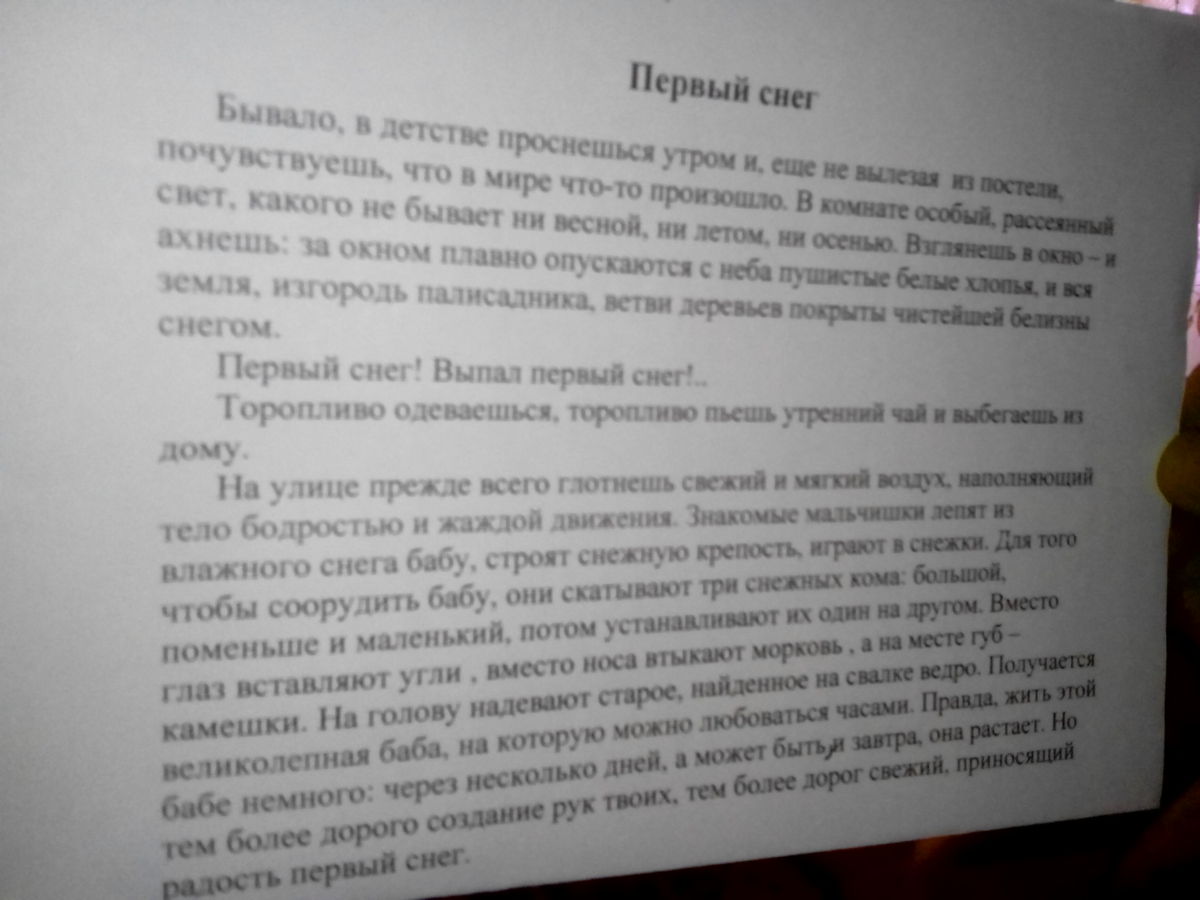 Первый снег (ед. ч., м. р., И. п.), прилаг. + сущ.