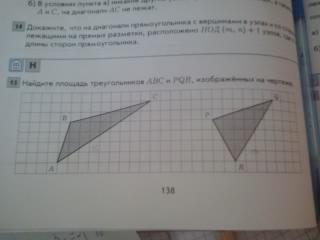 Найдите площадь треугольников ABC и PQR, изображенных на чертеже. Ответы: 15 и 14. под гоните под ответ пожалуйста!