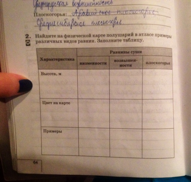 найдите на физической карте полушарий в атласе примеры различных видов равнин.