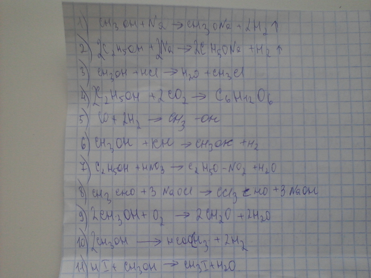9)ch3oh+o2