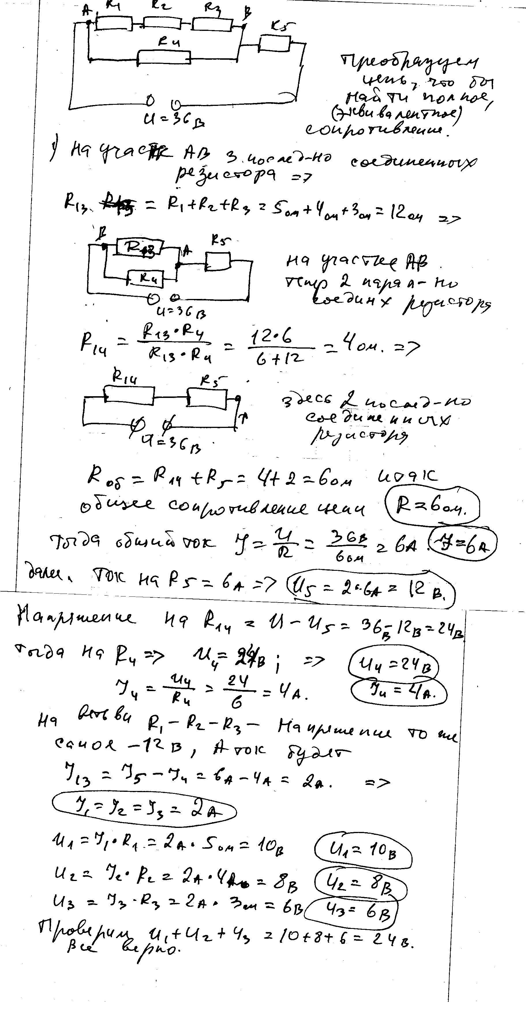 Расчет полного сопротевления и силы тока в цепи . R1=5ом, R2=4,R3=3ом R4=6ом R5=2ом Uab=36В Найти R-?, I-?