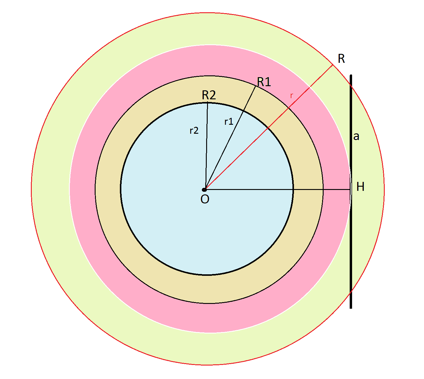 4) При радиусе окружности 4,5 см, ОН>r ⇒ Прямая а не пересекает окружность. На рисунке это синяя окружность. ОR₂=4,5