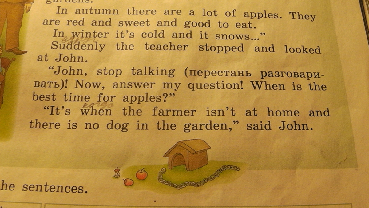 because when the fermer isn't at home and there is no dog,children can eat apples in the garden.