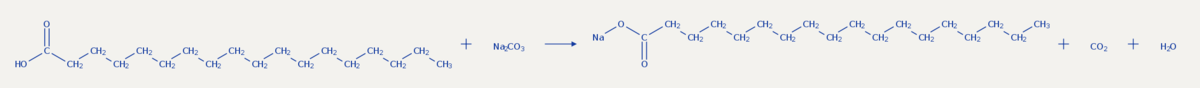 Основа жидкого мыла - калийные соли высших карбоновых кислот. Составь уравнение реакции образования такой соли.