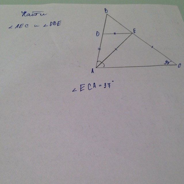 LEAC=LECA, t.k. треуг. равнобед. и углы при основании будут равны => LEAC=LECA=37 градусов