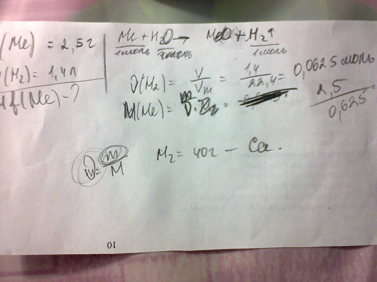 Двовалентний метал масою 2,5 грама без залишку прореагував з водою, при цьому видїлився газ Н2 об'єм 1,4 літри.Визначити метал.
