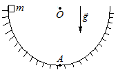Шайбу массой m удерживают на краю гладкой полусферической выемки, а затем отпускают без начальной скорости. Чему равен вес шайбы самом нижнем положении (в точке A)? Ускорение свободного падения g.