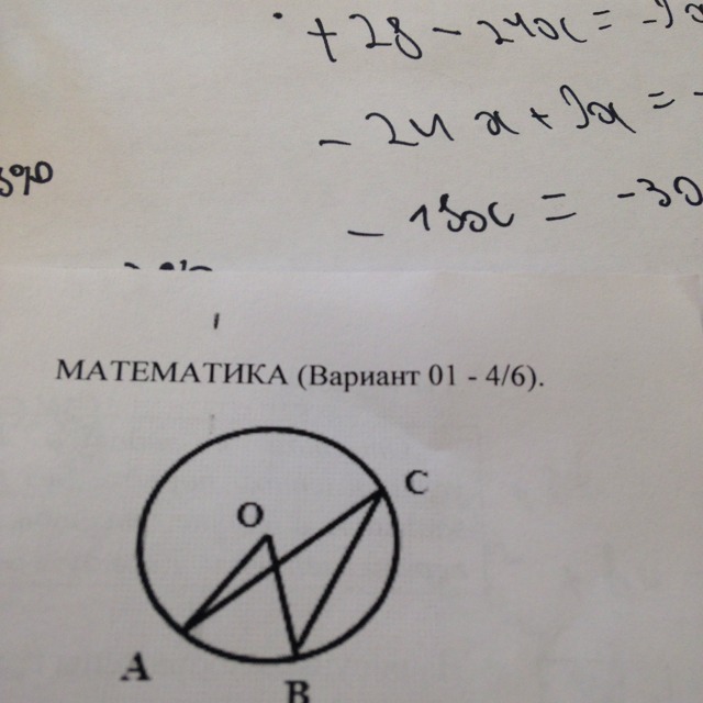 1) ∠ АОВ и ∠ АСВ опираются на одну дугу- AB.