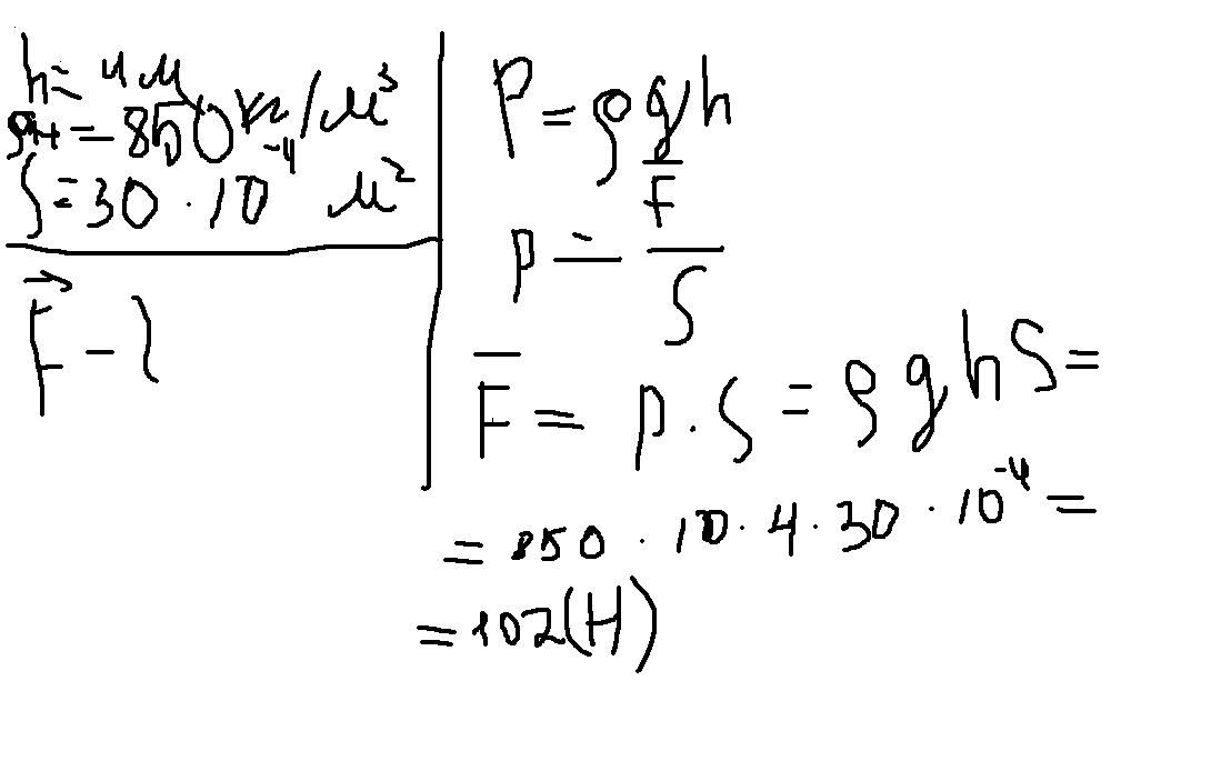 В цистерне, заполненой нефтью, на глубине 4м поставлен кран, площадью 30см2. С какой силой нефть давит на кран?