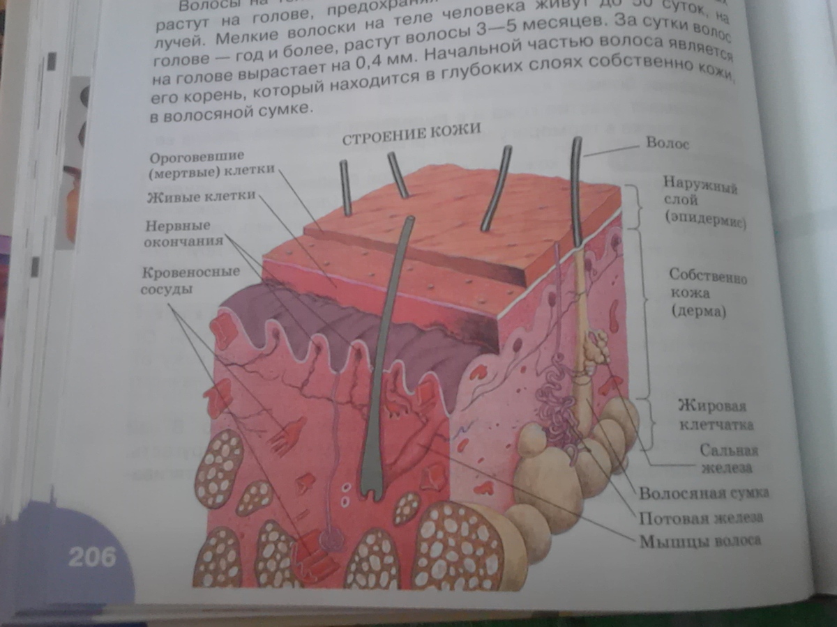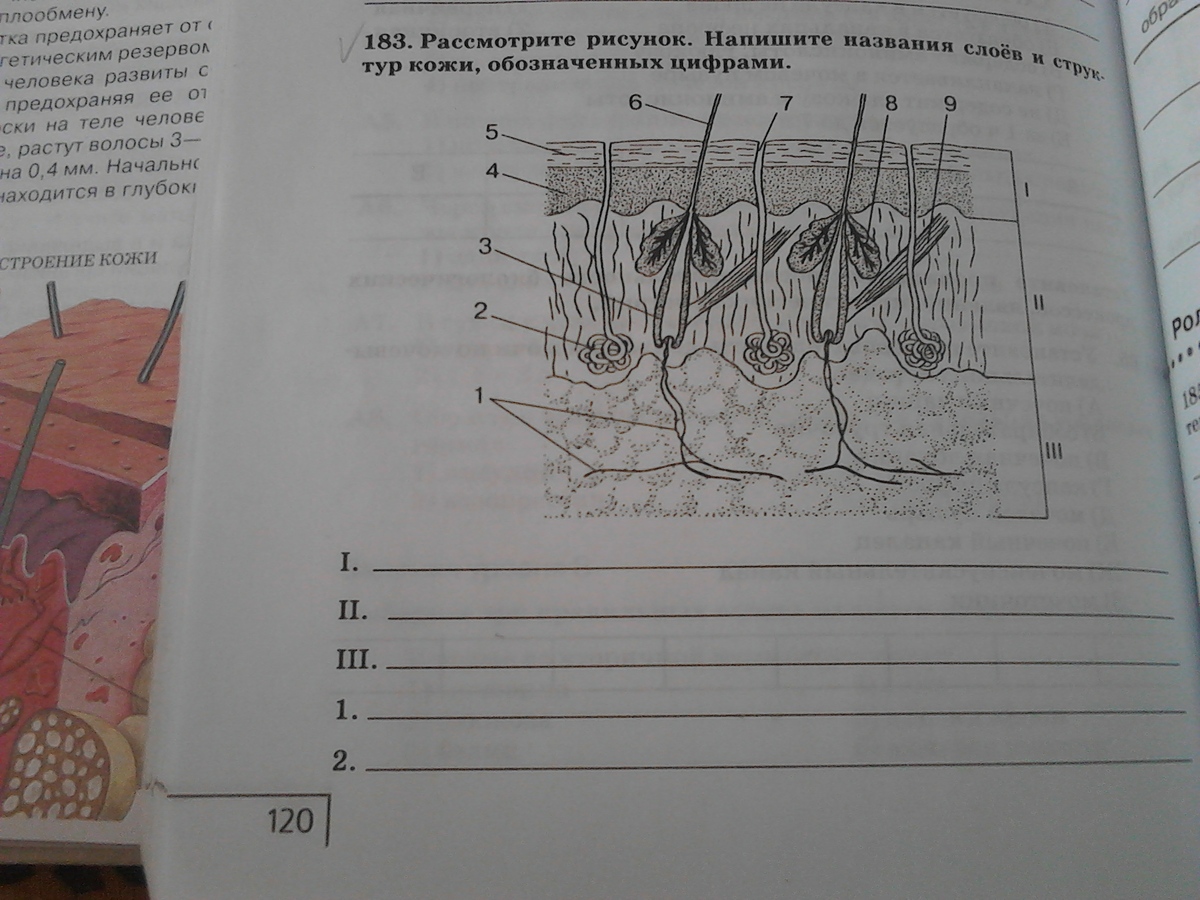 Рассмотрите рисунок.Напишите названия слоев и структур кожи,обозначенных цифрами.