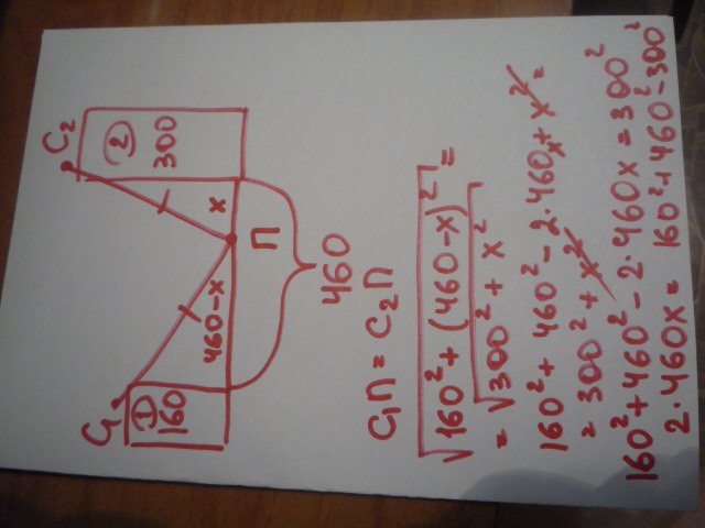 на крышах двух небоскребов находятся два сыщика . высота небоскреба равны 160 и 300 метров . расстояние междк ними равно 460 м . на каком расстоянии от второго небоскреба на земле находится подозреваемый если расстояния до обоих сыщиков одинаковые