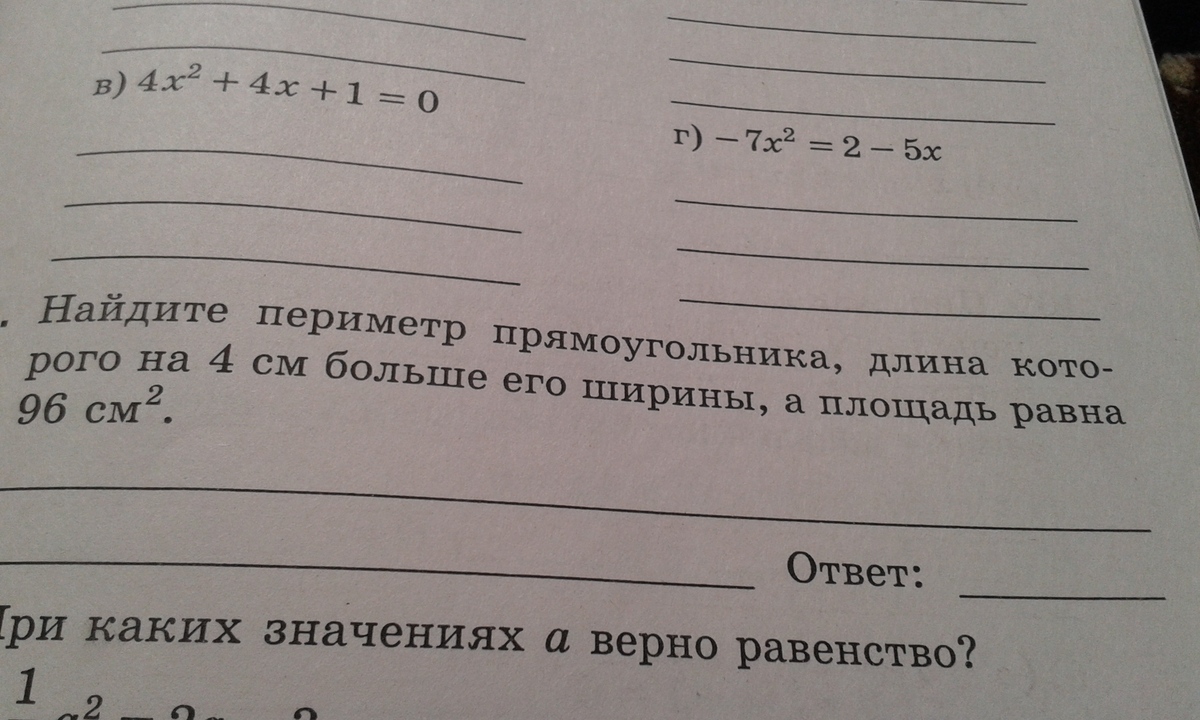 Так как длина не может быть отрицательным числом, то х=-12 --- посторонний корень ⇒ ⇒ б=8, а=12 ⇒ P=8+12+8+12=40