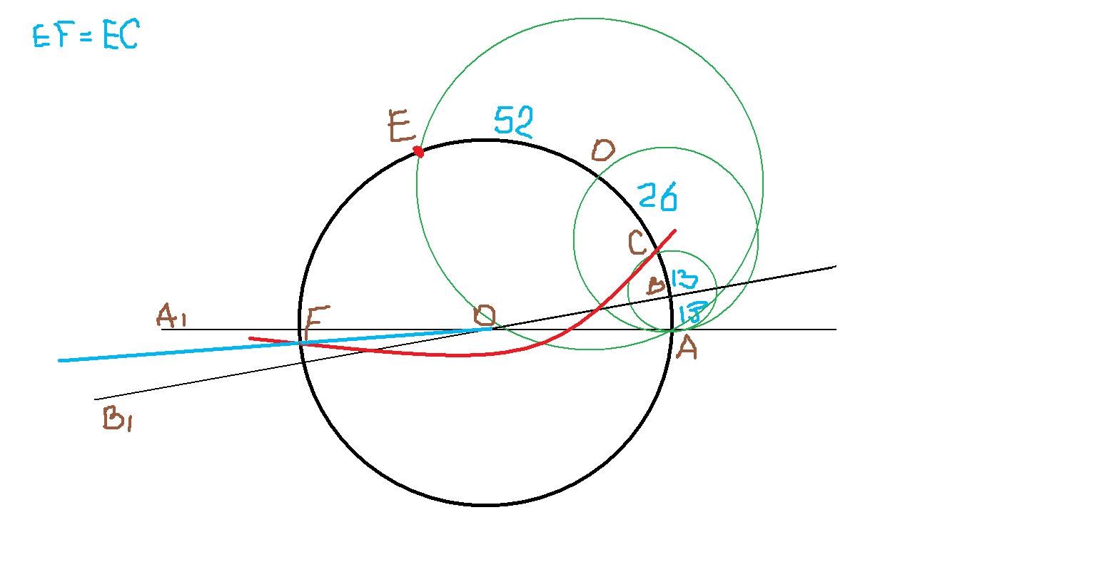 Далее, замечая, что 13*14=182, откладываем на окр. 14 дуг по 13 градусов(на рис. 8*13 и 6*13)
