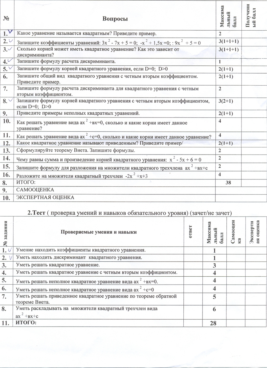 Квадратные уравнения,зачет.