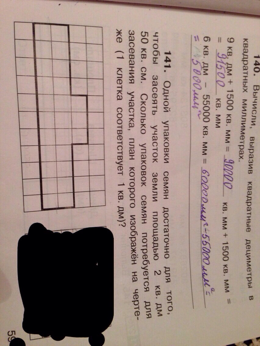Одной упаковкой семян достаточно для того, чтобы засеять участок земли площадью 2 кв. дм. 50 кв. см. Сколько упаковок семян потребуется для засевания участка , план которого изображен на чертеже (1 клетка соответствует 1 кв. дм.)?