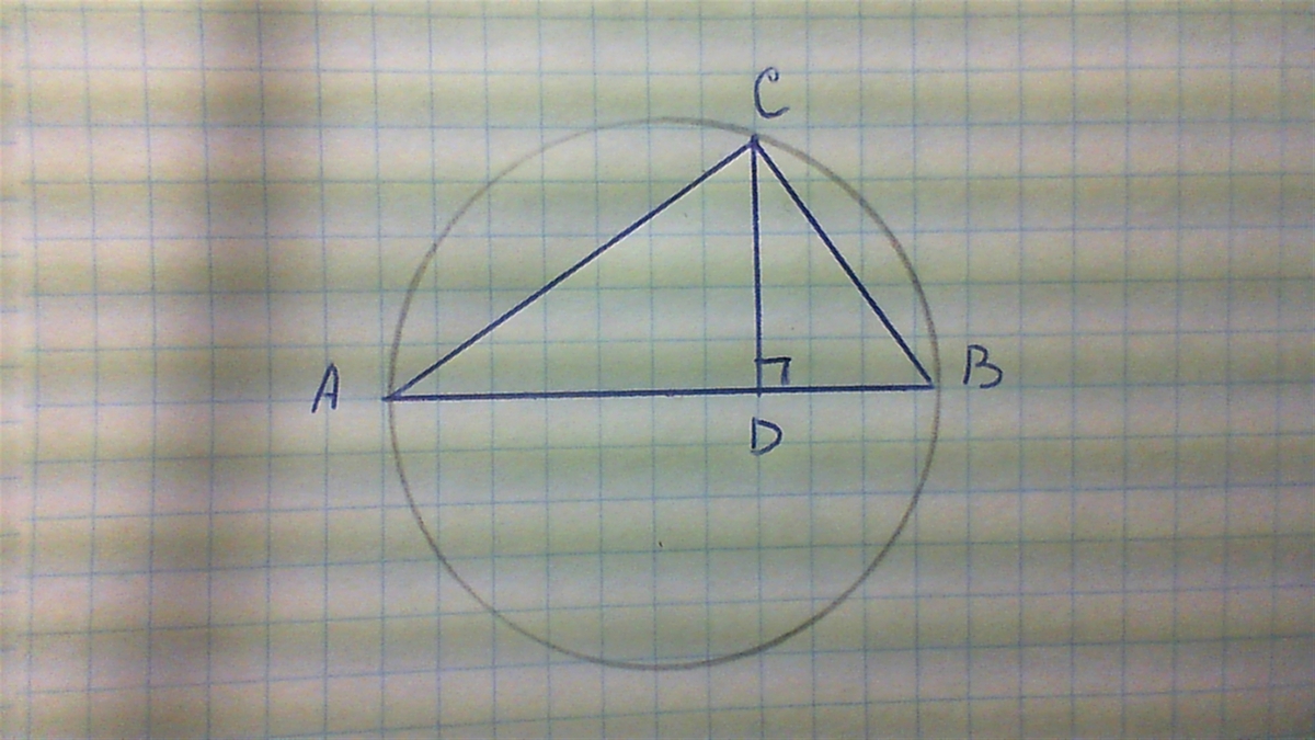 Про CD: Высота прямоугольного треугольника, проведенная из вершины прямого угла, есть среднепропорциональное для отрезков, на которые делится гипотенуза