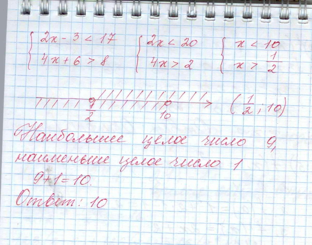 Найдите сумму наибольшего целого и наименьшего целого решения системы