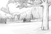 Как нарисовать пейзаж карандашом по двум точкам схода? Меня просто в школе не было, а уже нужно на А3 нарисовать карандашом. Зарание большое спасибо))