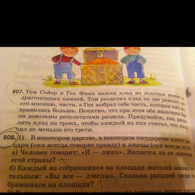 Разделить клад тома Сойера и гека фина на три равных части чтобы все были довольны