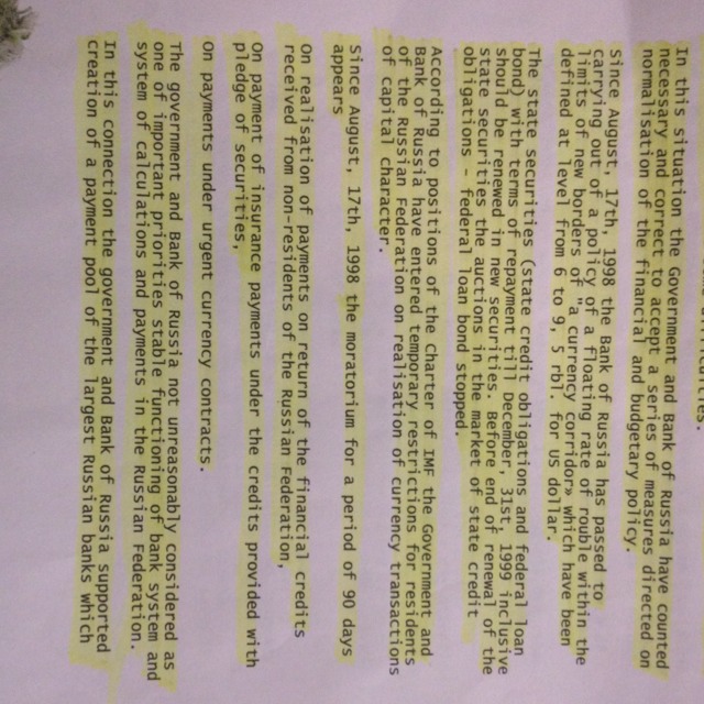 С 17-ого августа 1998 Банк Россия прошел
