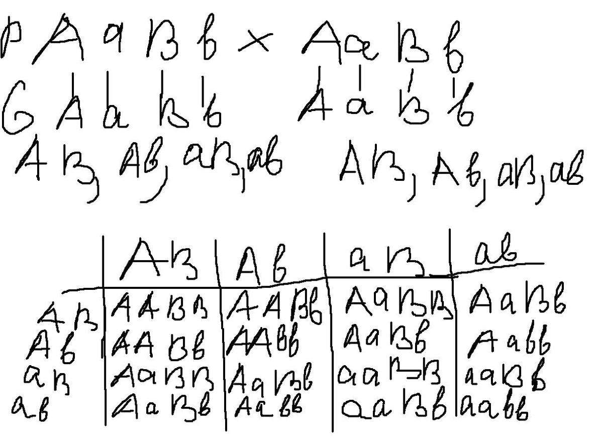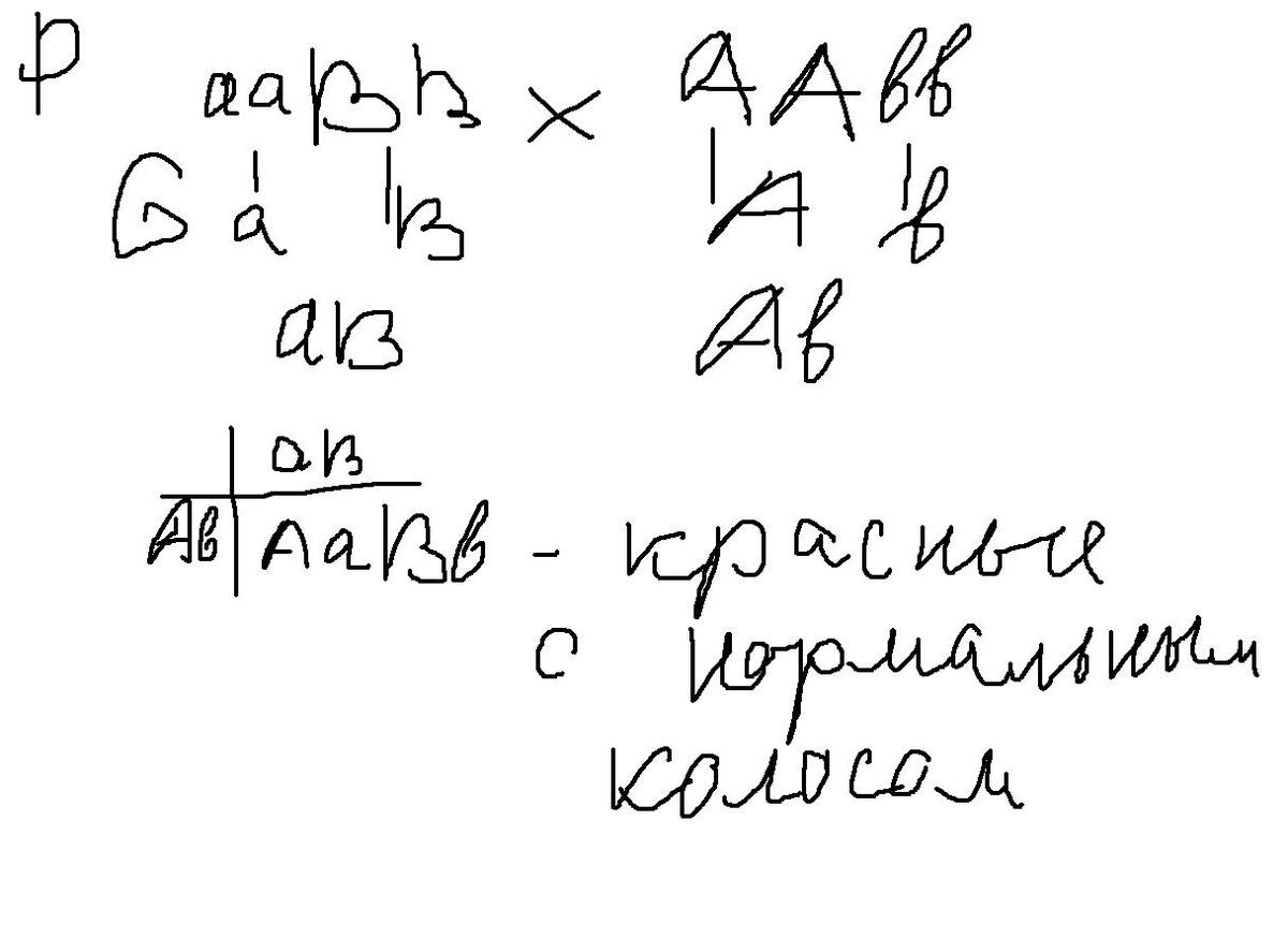 AABB, ААВв,АаВВ,АаВв,ААВв,АаВв,АаВВ,АаВв,АаВв - красные растения с нормальным колосом