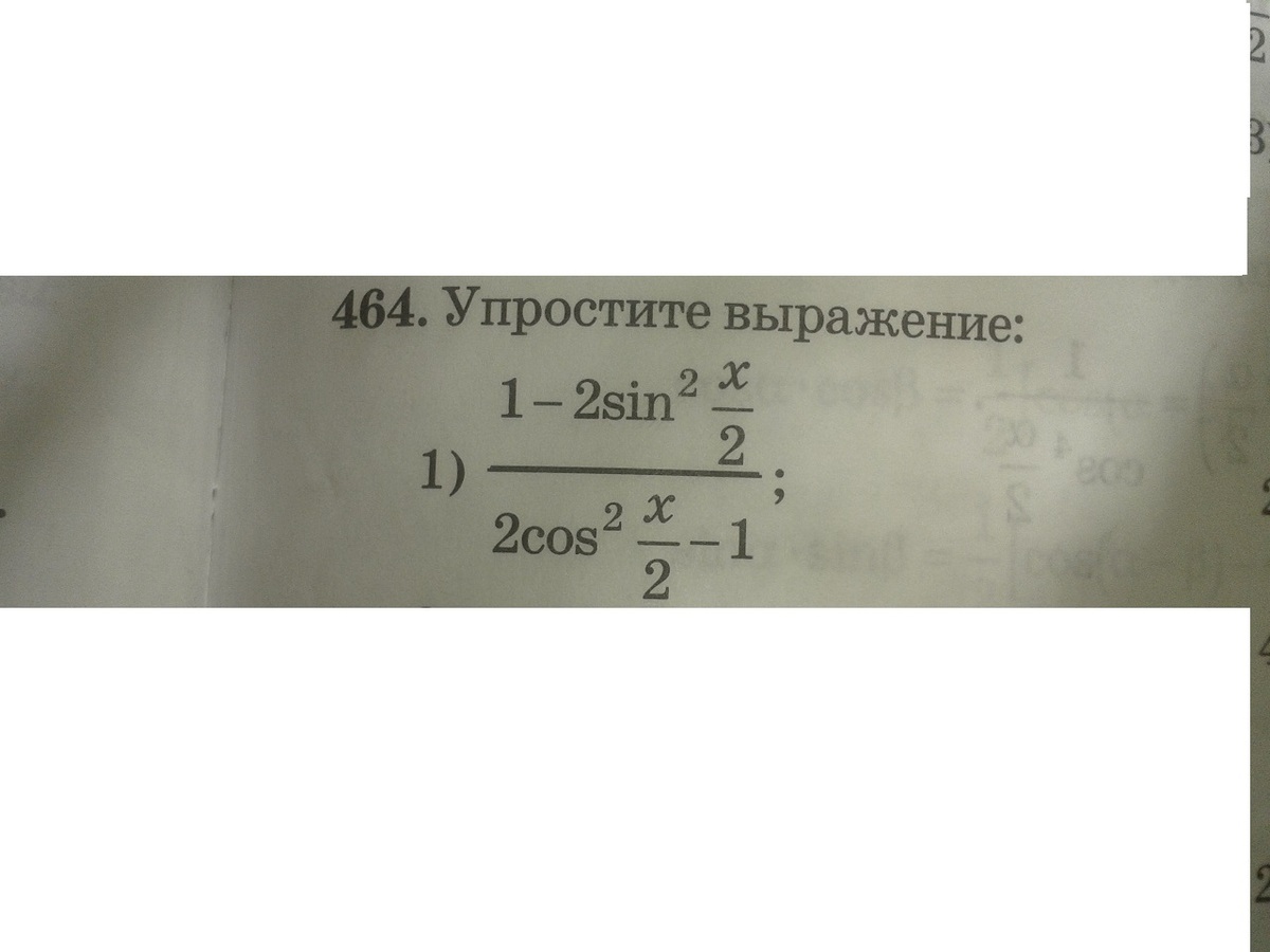(1-2sin² x/2)/(2cos² x/2-1)=cos x/cos x=1 при cos x/2<>+-√2/2