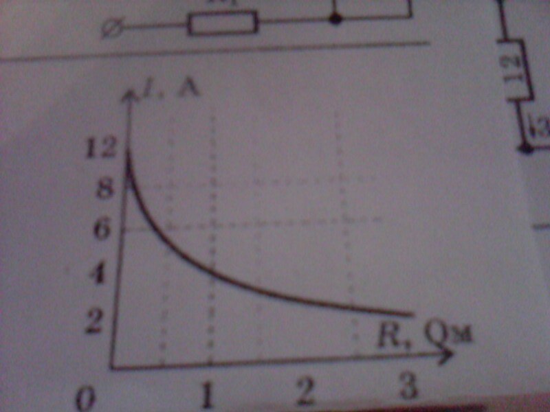 К источнику тока с внутренним сопротивлением 0,5 Ом подключили реостат. На рисунке показан график изменения силы тока в реостате в зависимости от его сопротивления. Чему равна ЭДС источника тока?
