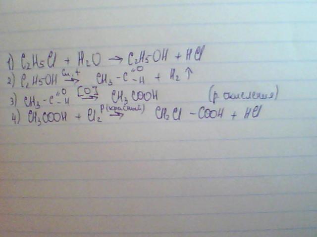 C2H5Cl-->C2H5OH-->CH3CHO-->CH3COOH-->CH2ClCOOH