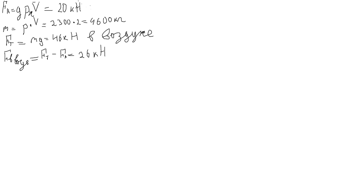 Бетонная прита объёмом 2 м в кубе погружена в воду.Какую силу необходимо применить чтобы удержать её в воде?В воздухе?SOS!!!