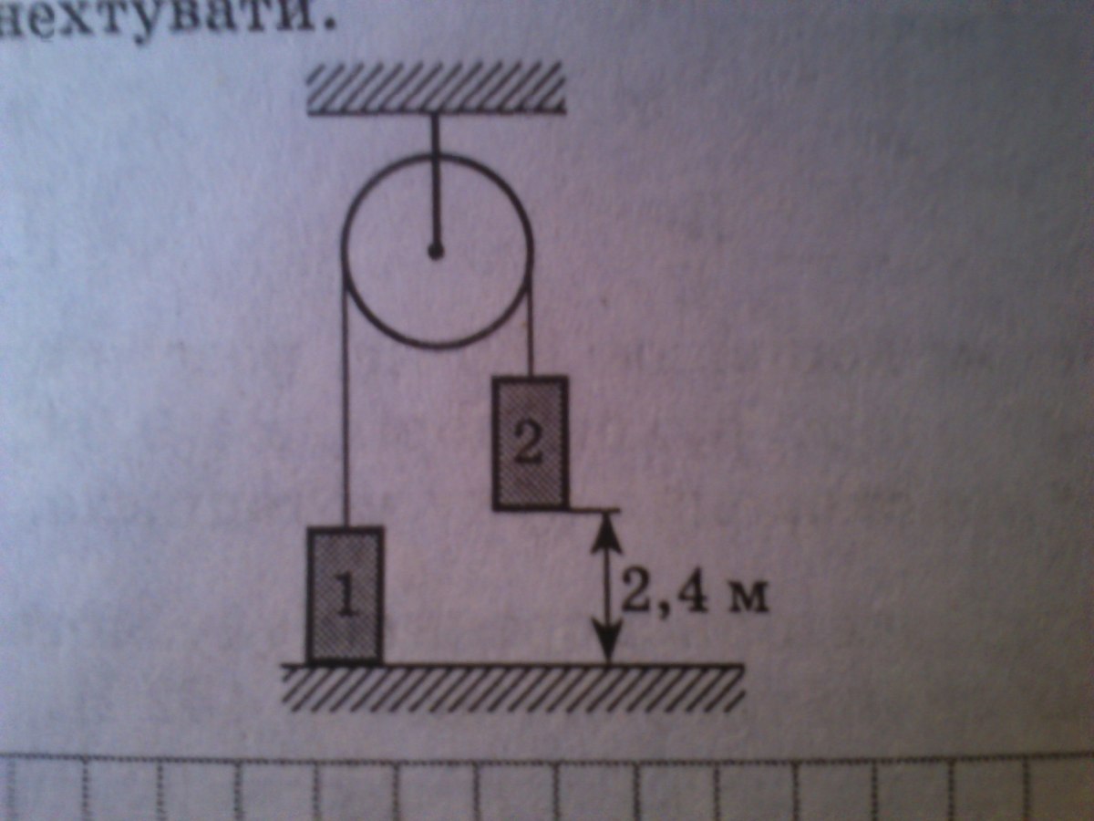 2. С помощью устройства, изображенного на рисунке (см. вложение), определяли ускорение свободного падения. Вычислите, который получили результат, если груз массой m2 коснулся пола через 2 с после начала движения, переместившись на расстояние 2,4 м. Известно, что m1 = 700 г, m2 = 900 г. Трением пренебречь.